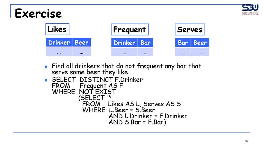 WHERE F.Bar = S.Bar AND NOT EXIST