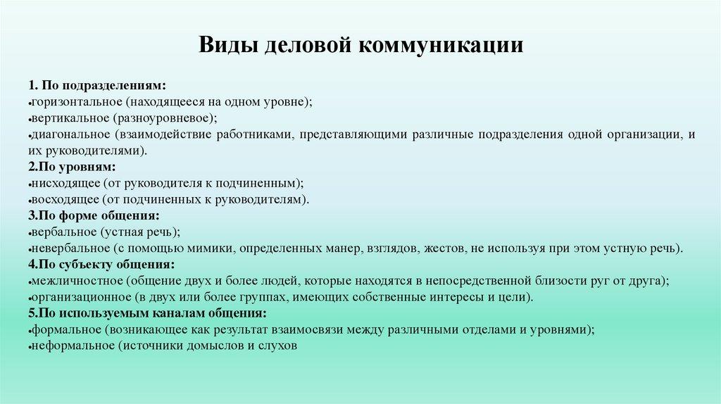Виды и формы деловой коммуникацииВиды деловой коммуникации