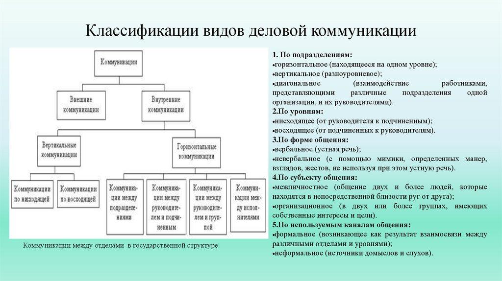 Классификации видов деловой коммуникацииКоммуникации между отделами в государственной структуре