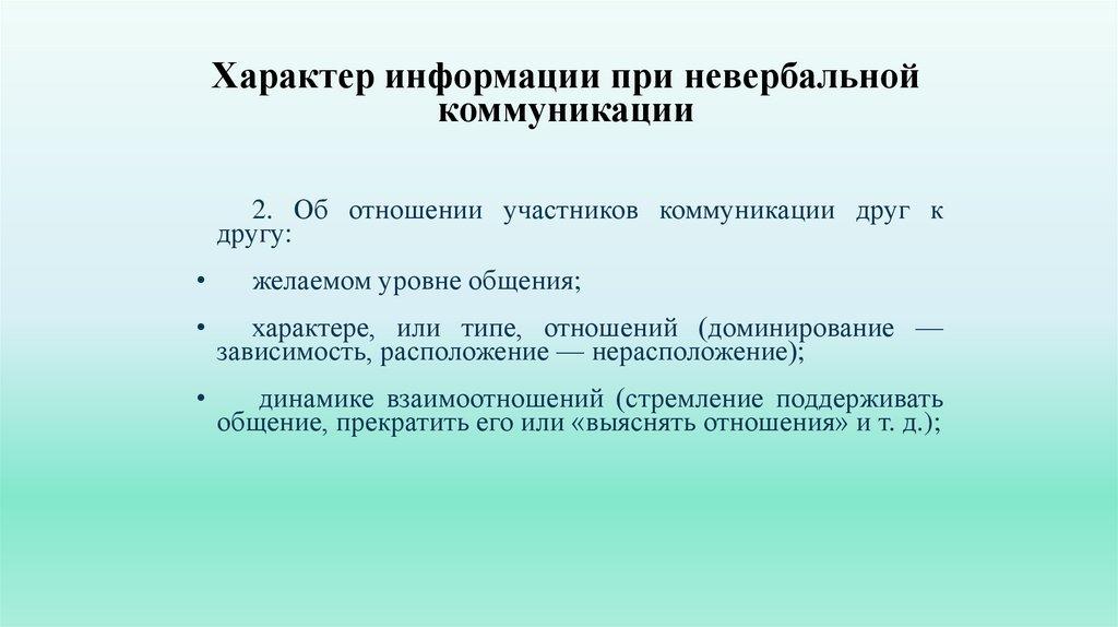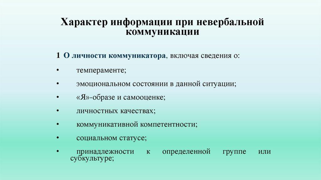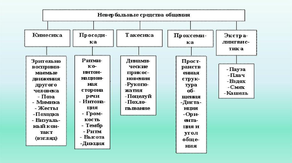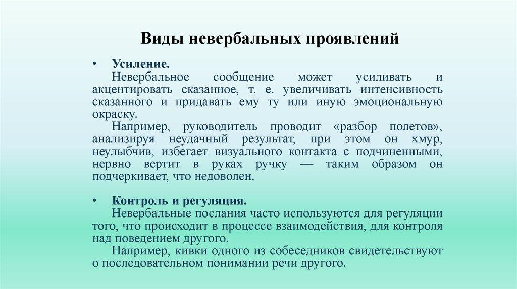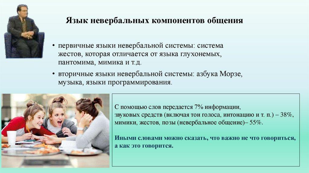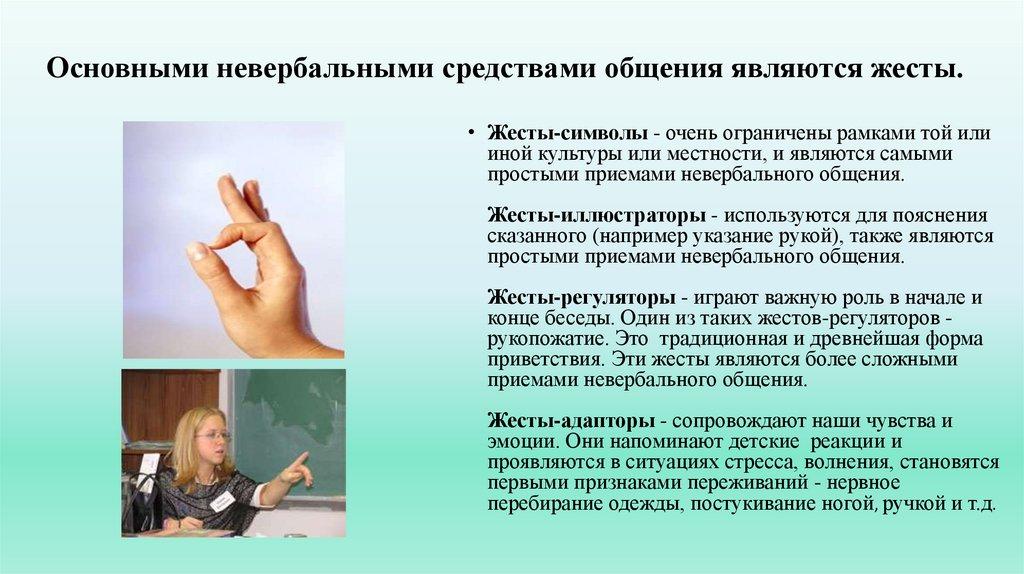 невербальное (с помощью мимики, определенных манер, взглядов, жестов, не используя при этом устную речь).