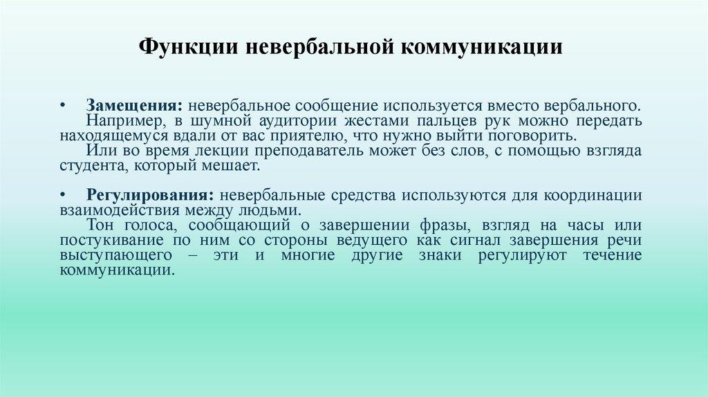 Функции невербальной коммуникацииЗамещения: невербальное сообщение используется вместо вербального.