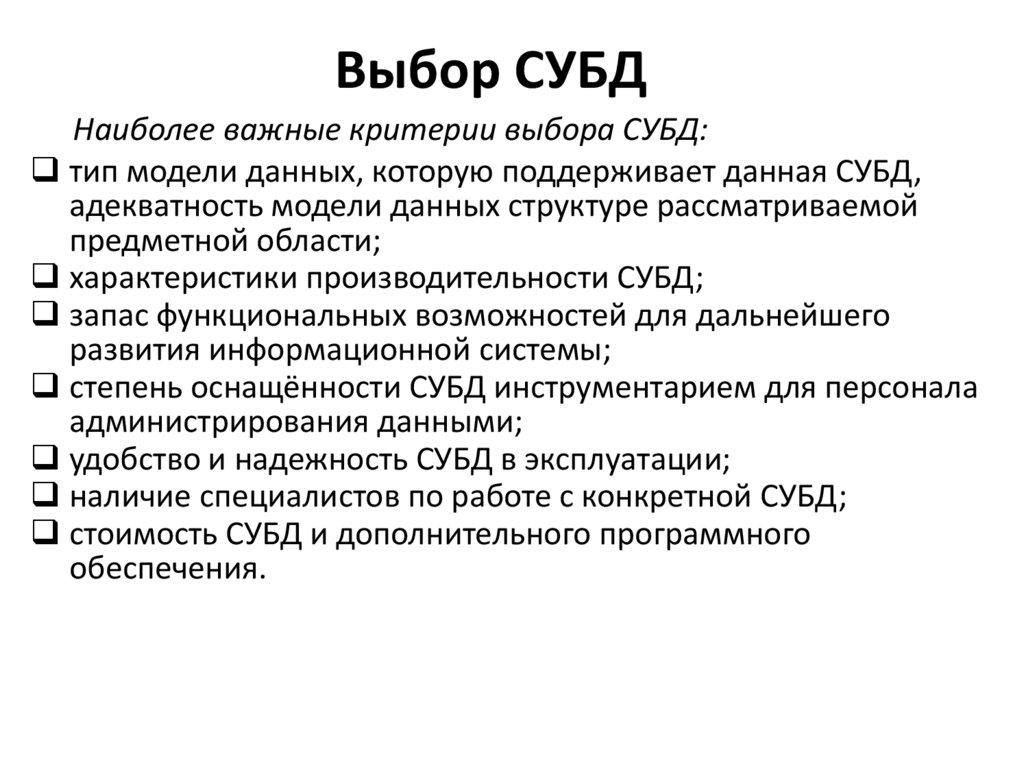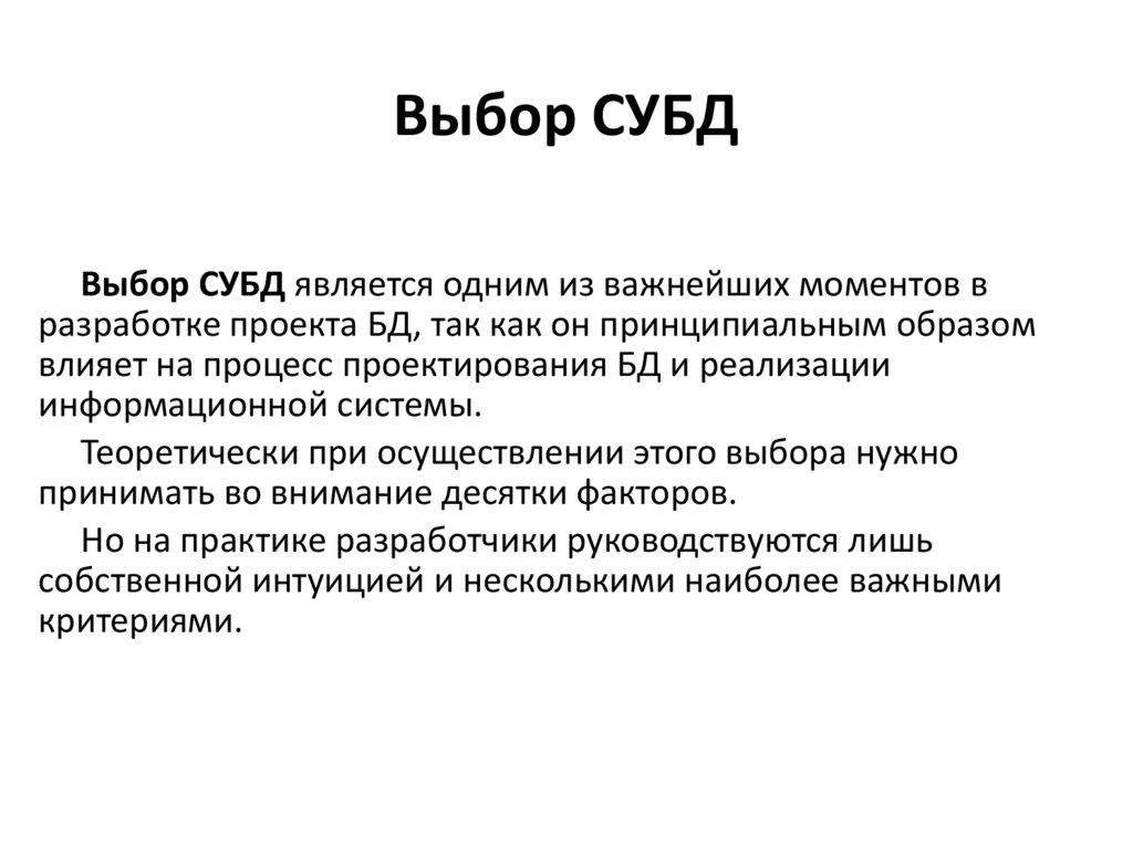 • Поскольку сферы интересов пользователей различных СУБД