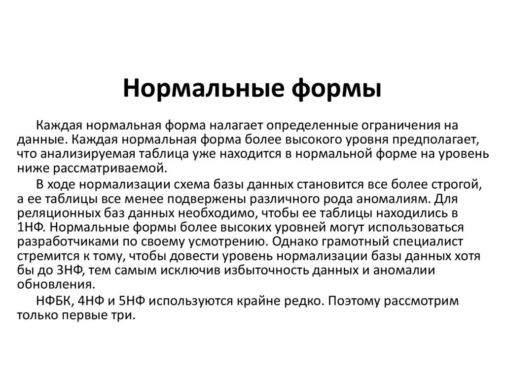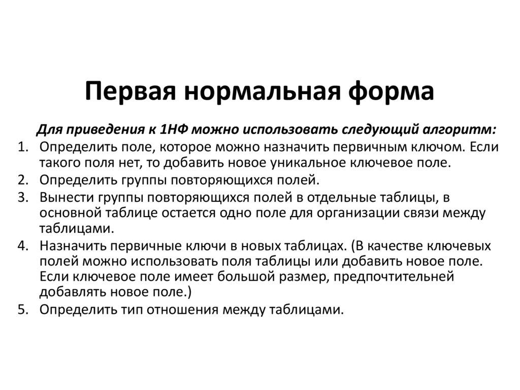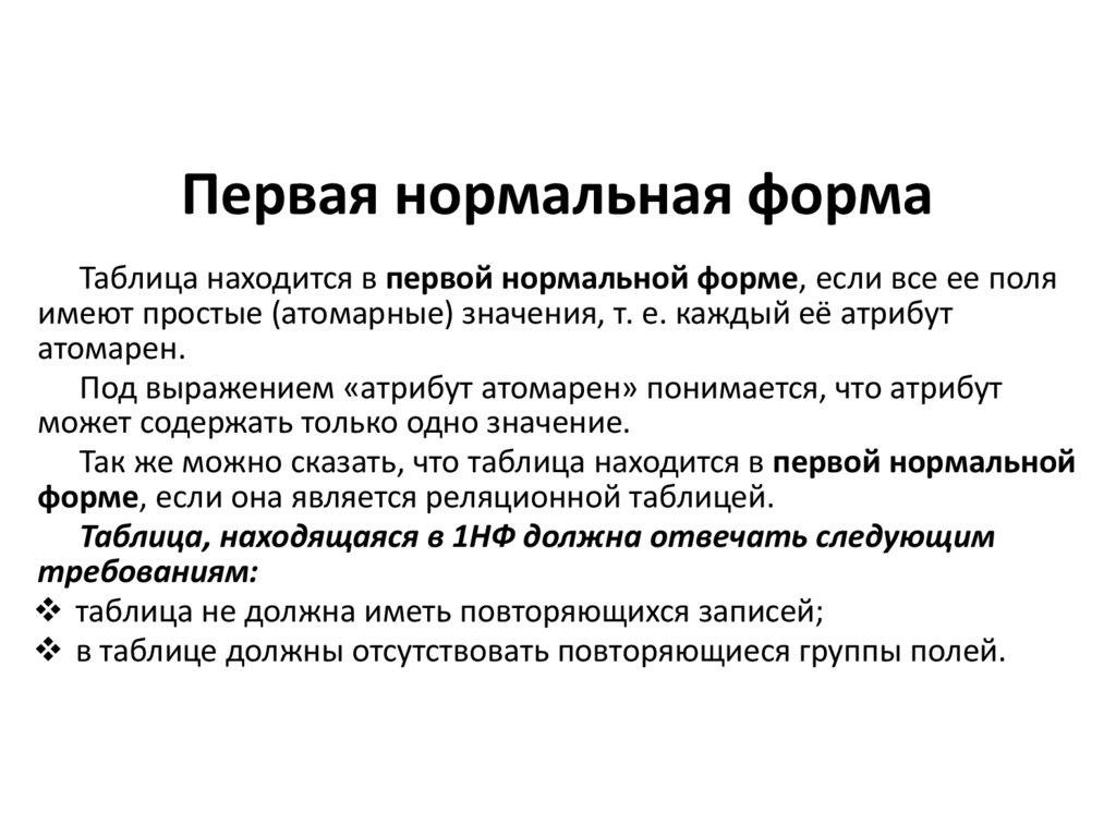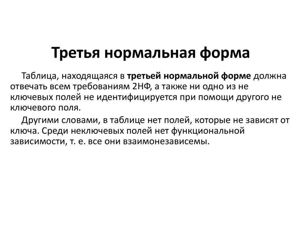 отвечать всем требованиям 1НФ, а также любое не ключевое