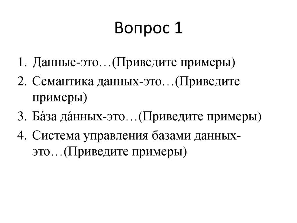 3. Ба́за да́нных-это…(Приведите примеры)