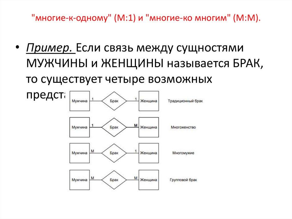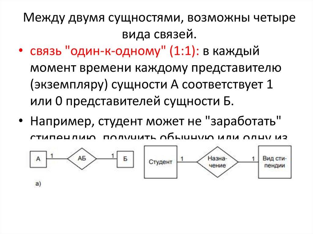 Между двумя сущностями, возможны четыревида связей.
