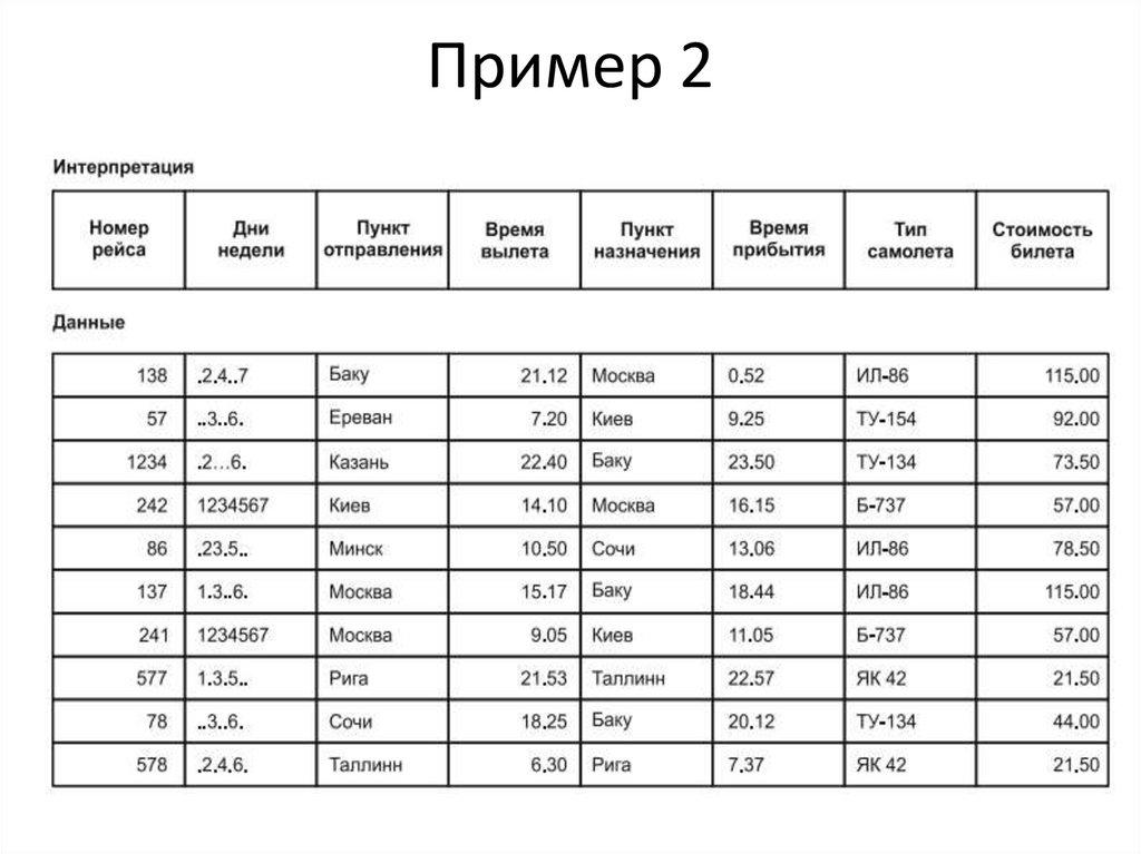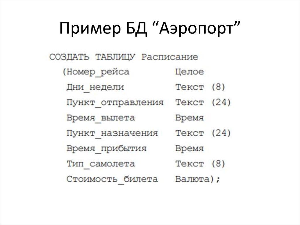 Пример БД “Аэропорт”7.