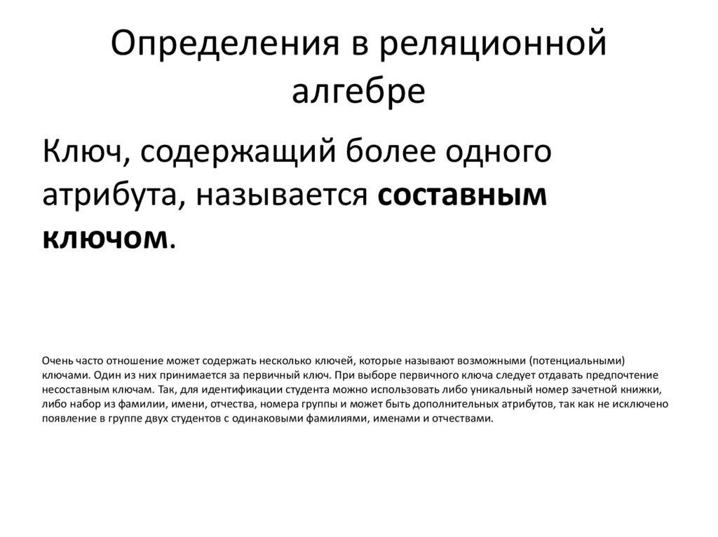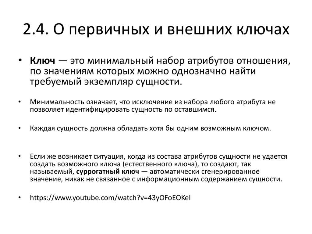 Ключ — минимальный набор атрибутов, по