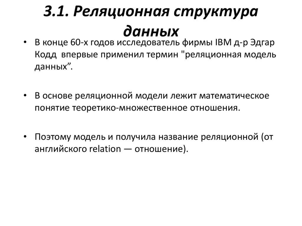 доктор Э.Ф. Кодд предложил реляционную модель в качестве новой