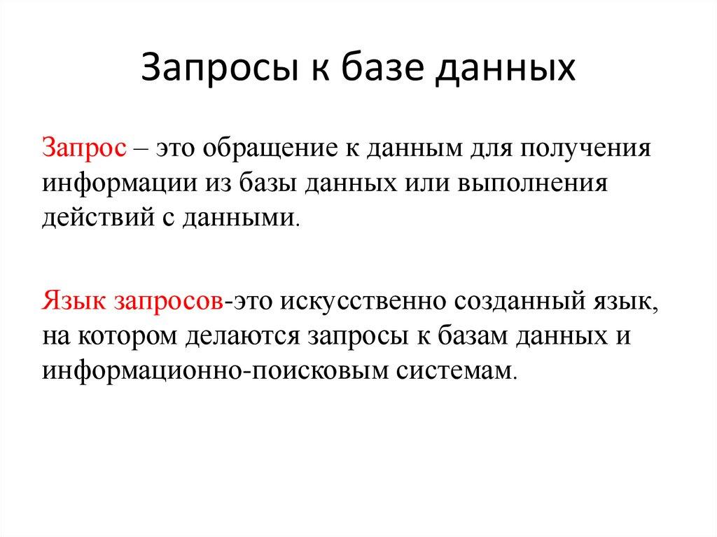 Запросы к базе данныхЗапрос – это обращение к данным для получения