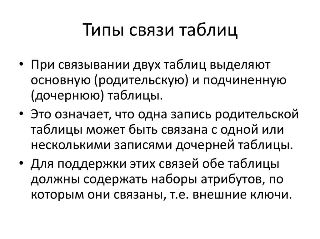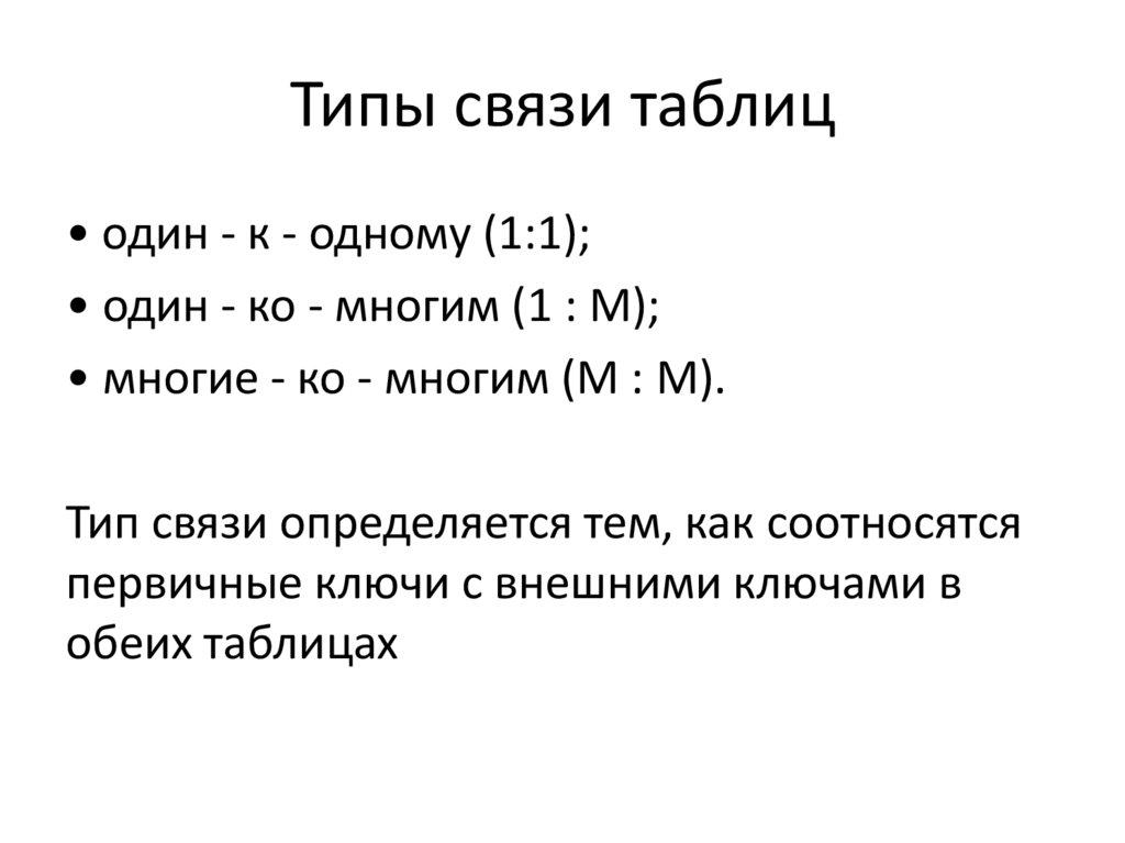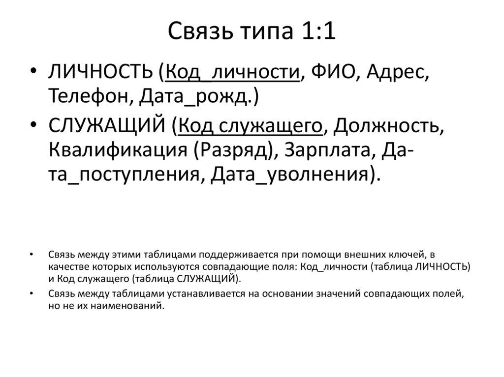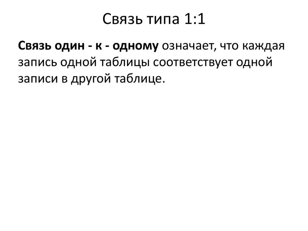 • связь "один-к-одному" (1:1): в каждый