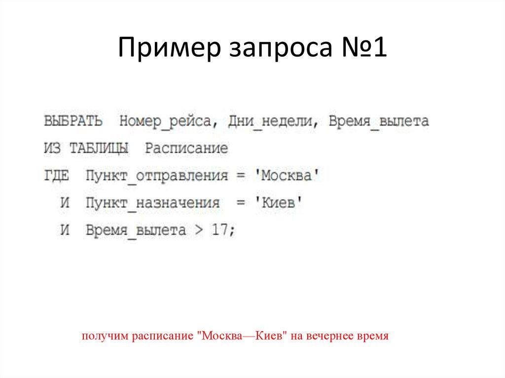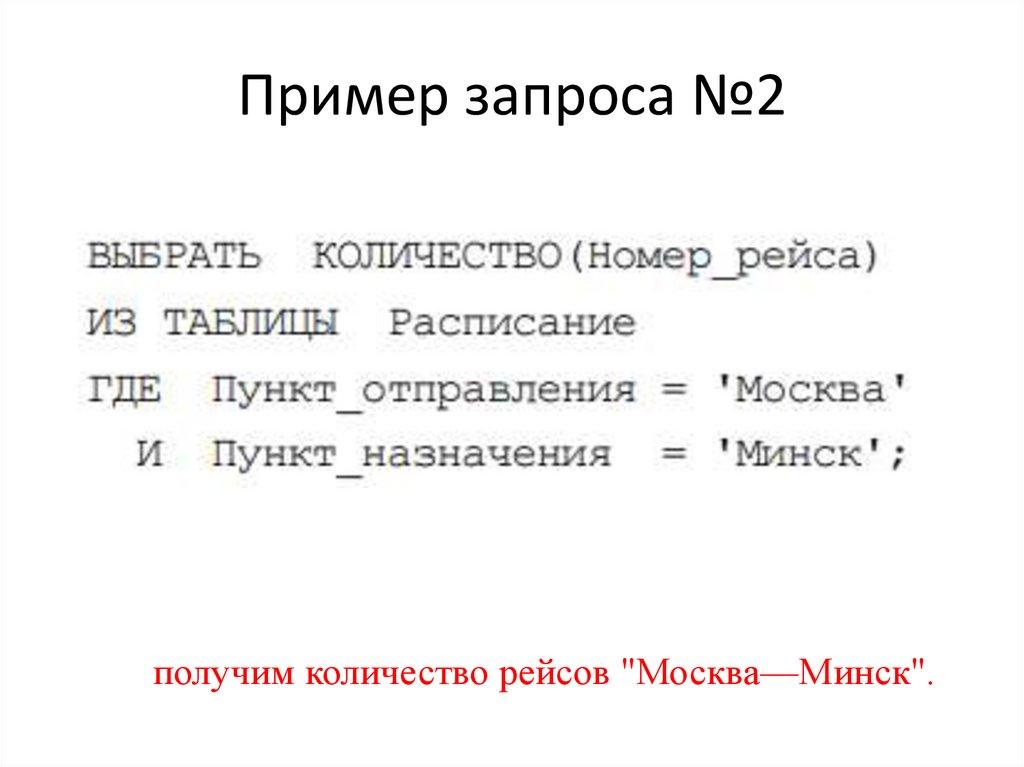 Пример запроса №2получим количество рейсов "Москва—Минск".