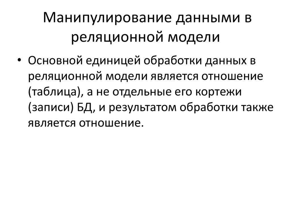 соответствии со схемой данных, манипулирование