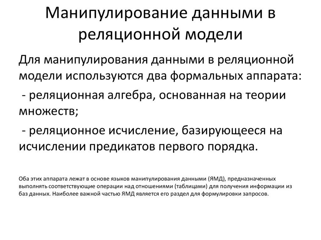 распространения постепенно стал стандартом “дефакто” для языков манипулирования данными в