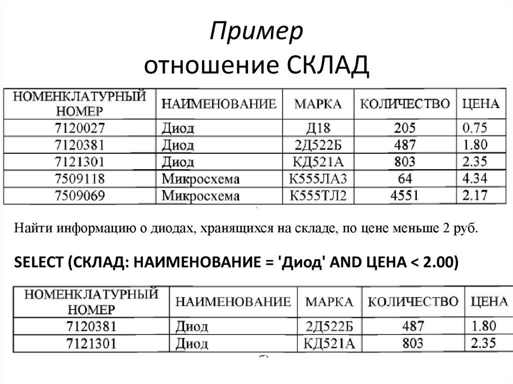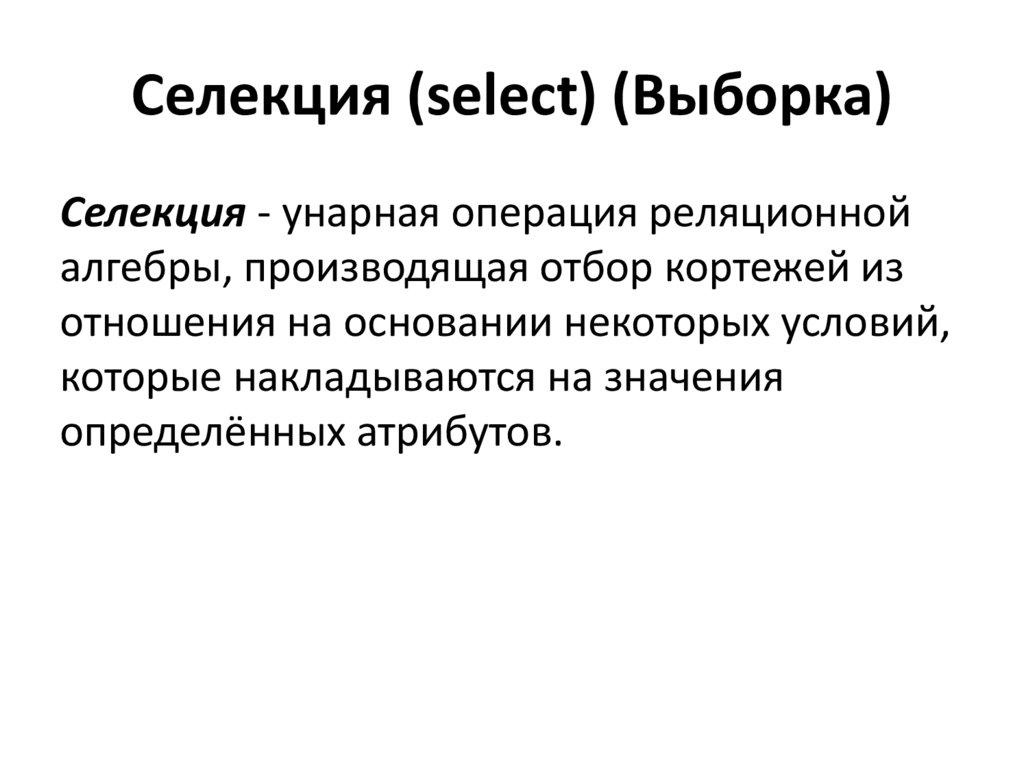 структуры) и над данными таблиц (выборка,