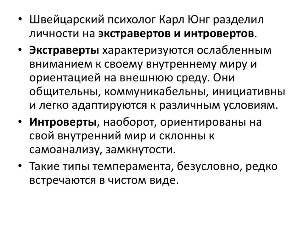 • Швейцарский психолог Карл Юнг разделилличности на экстравертов и интровертов.