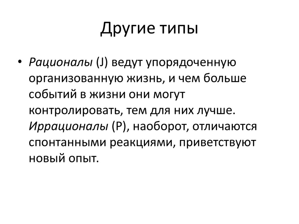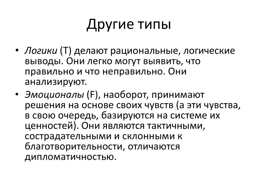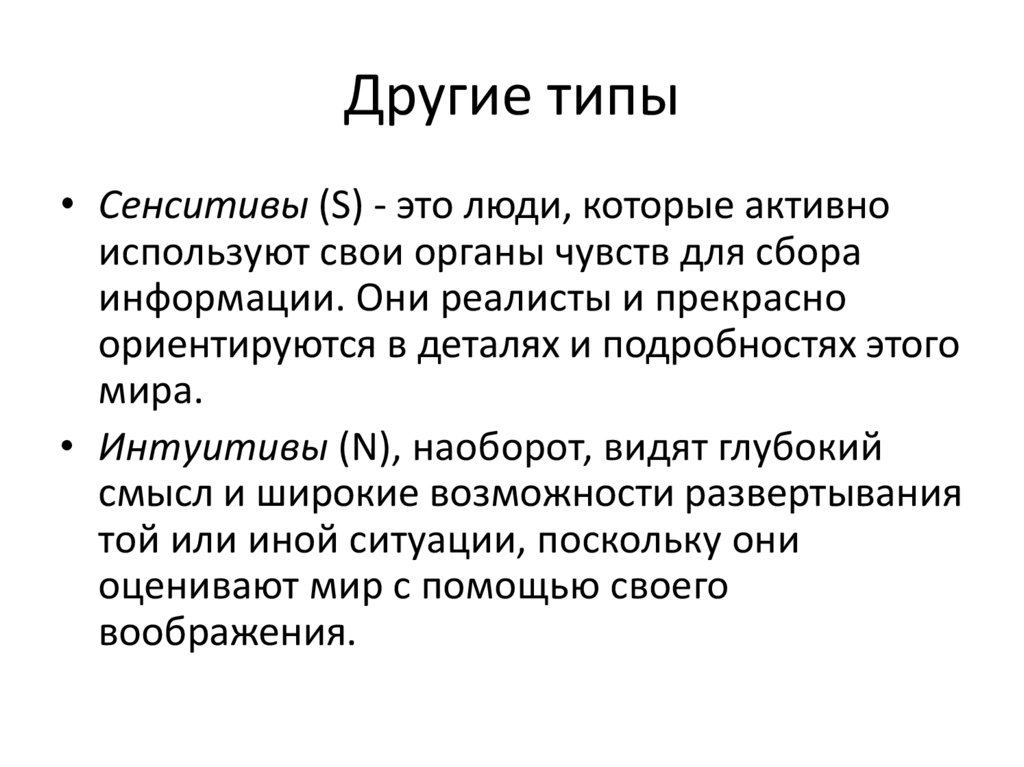 Другие типы• Сенситивы (S) - это люди, которые активно