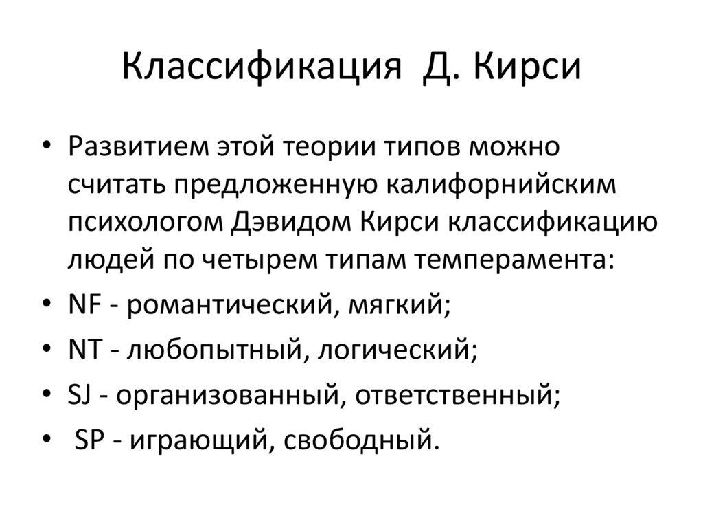 Классификация Д. Кирси• Развитием этой теории типов можно