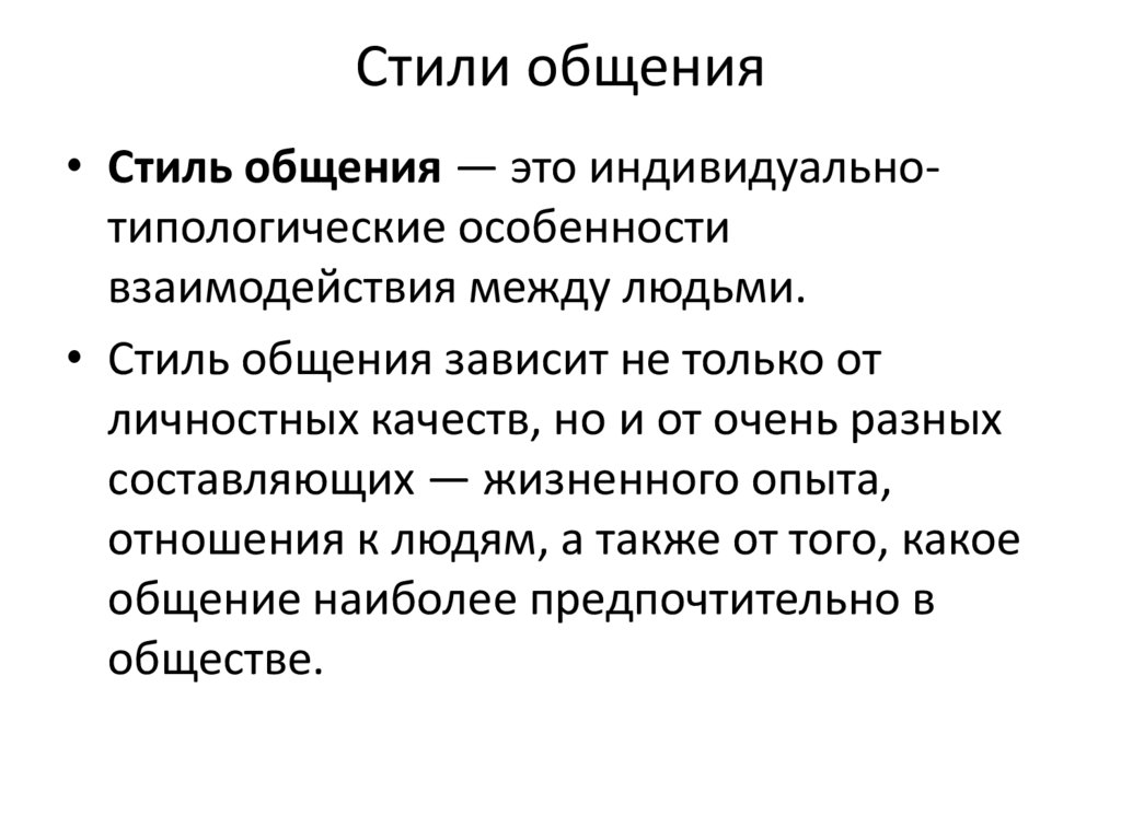 Стили общения• Стиль общения — это индивидуальнотипологические особенности