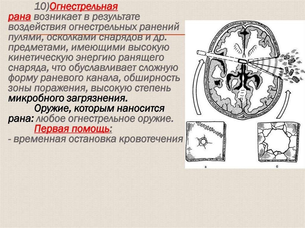 10)Огнестрельнаярана возникает в результате