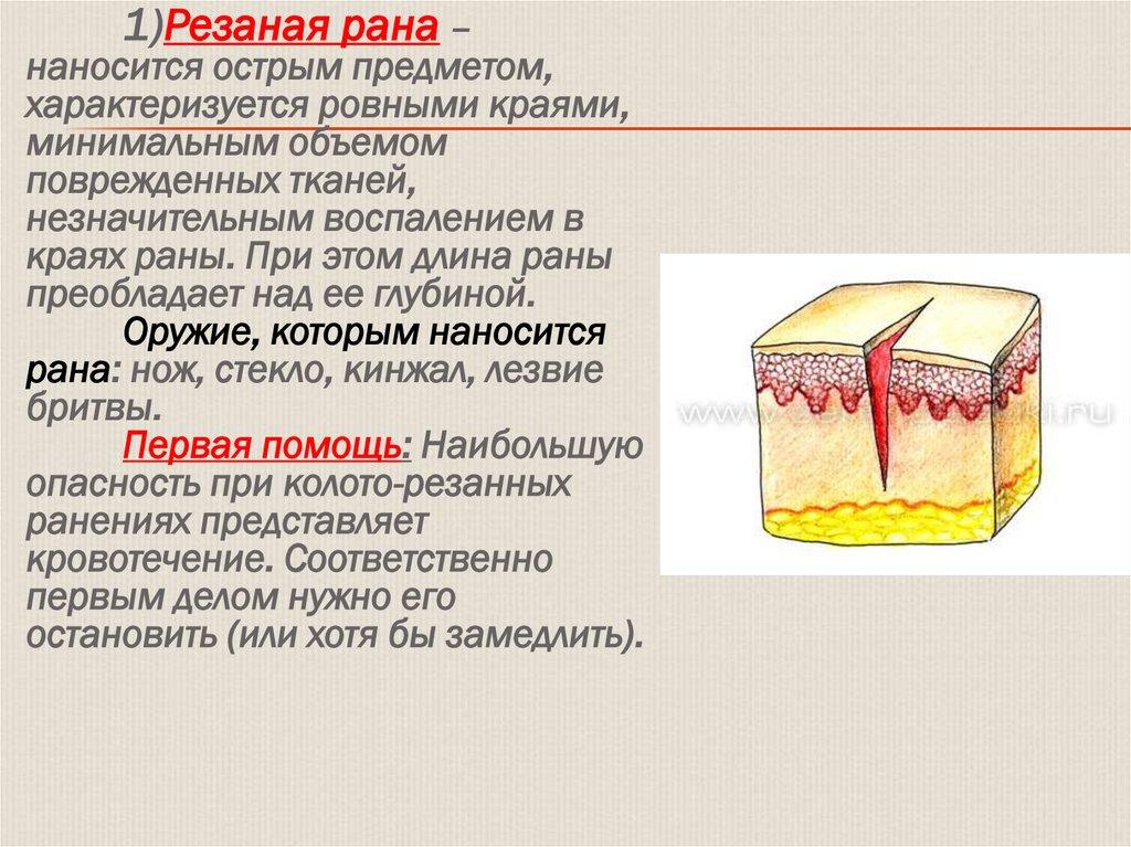 1)Резаная рана –наносится острым предметом,