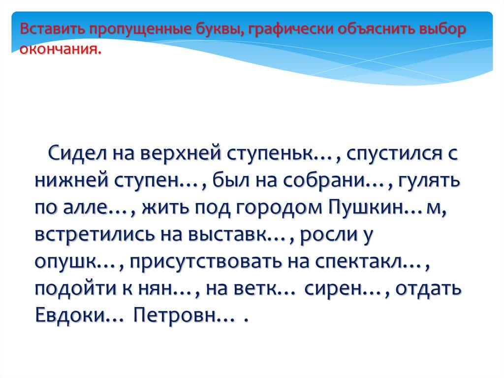 Вставить пропущенные буквы, графически объяснить выборокончания.