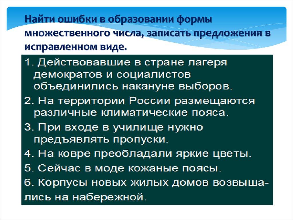 Найти ошибки в образовании формымножественного числа, записать предложения в
