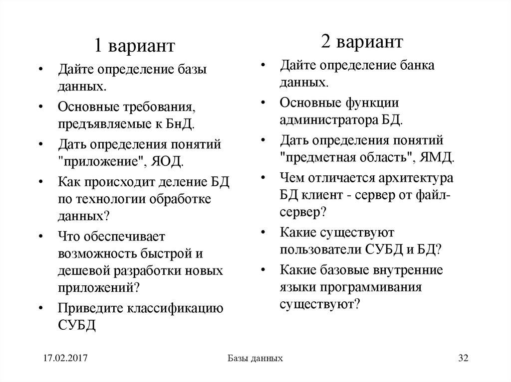 17.02.2017Базы данных