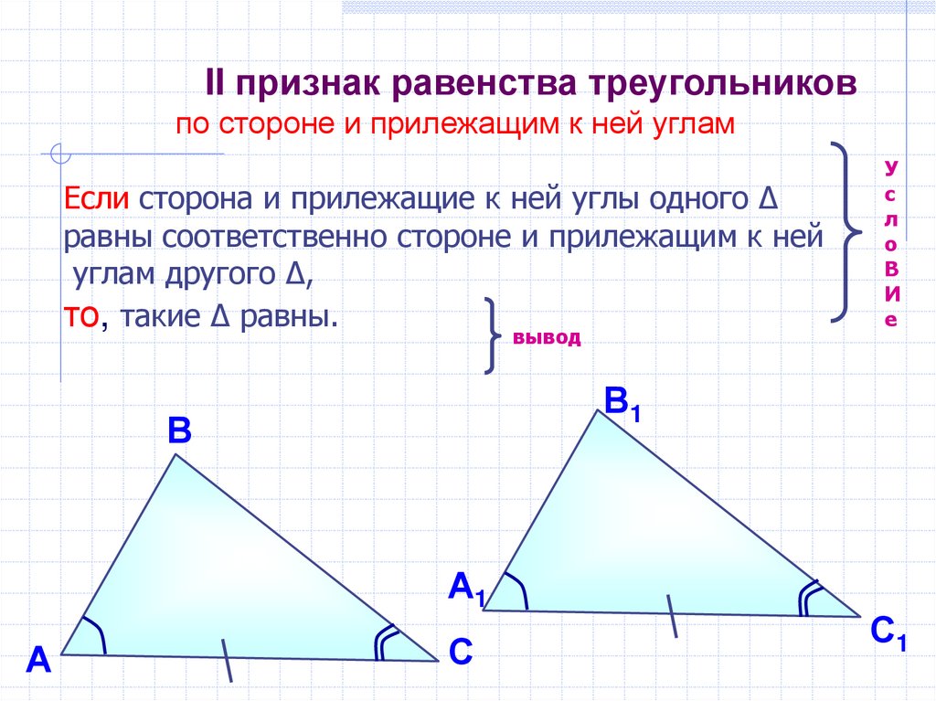 II признак равенства треугольниковпо стороне и прилежащим к ней углам