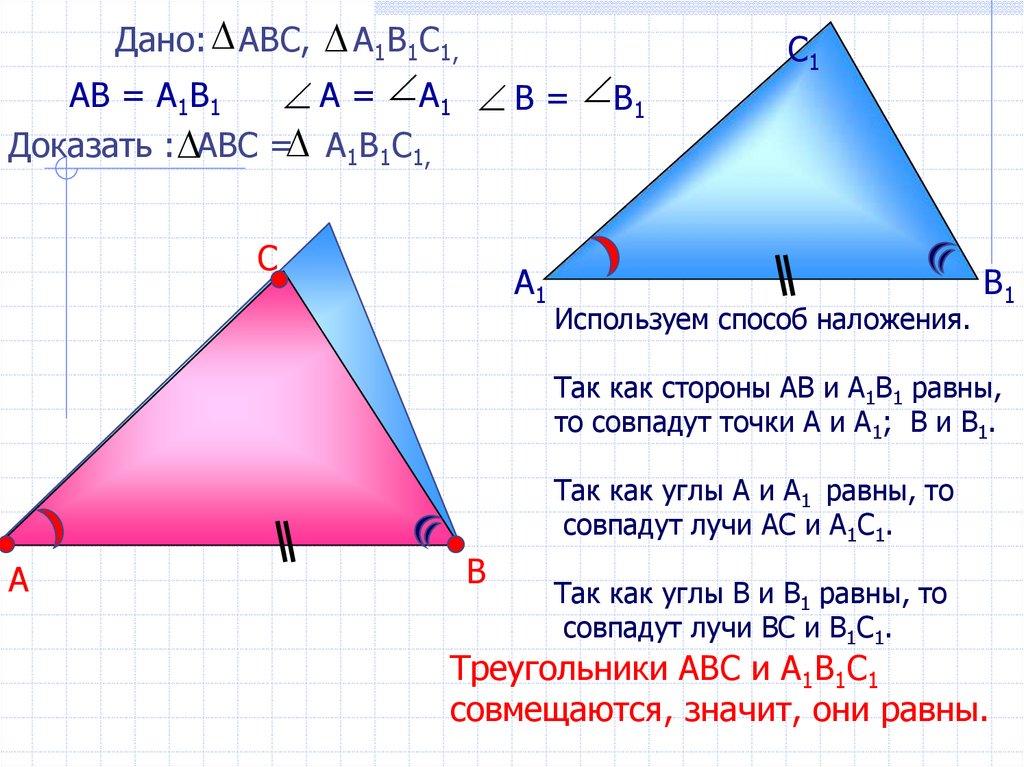 Дано: АВС, А1В1С1,АВ = А1В1