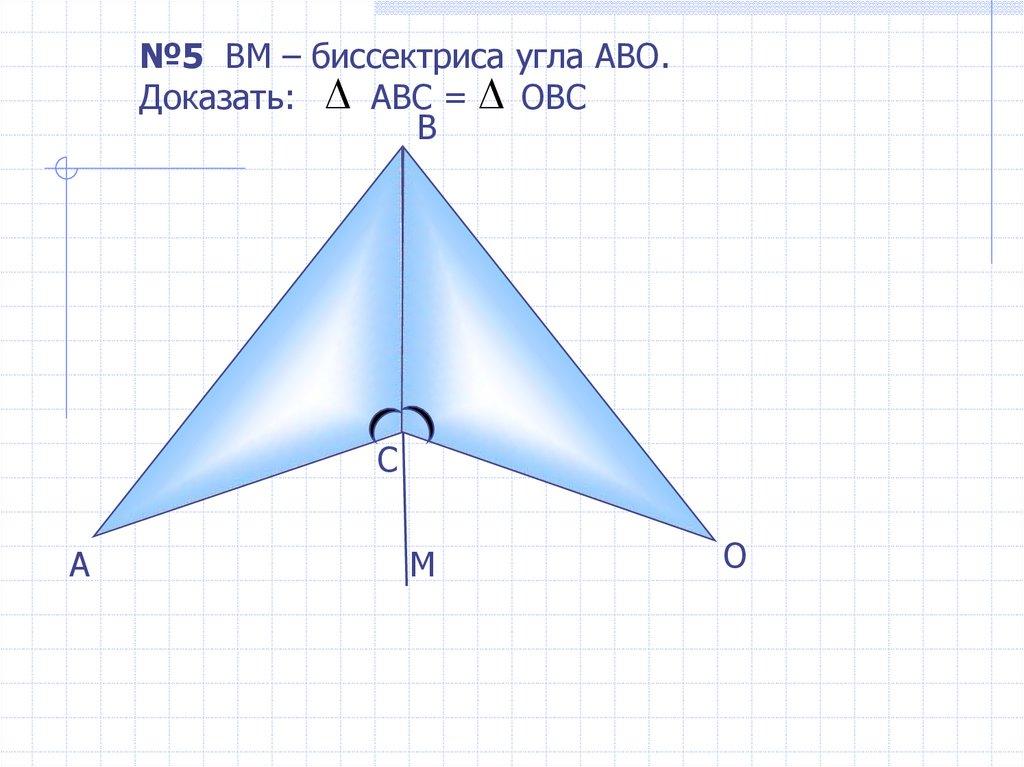 №5 ВM – биссектриса угла АВО.Доказать: АВС = ОВС