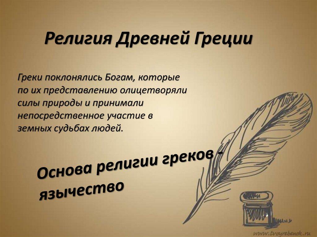 Религия Древней ГрецииГреки поклонялись Богам, которые