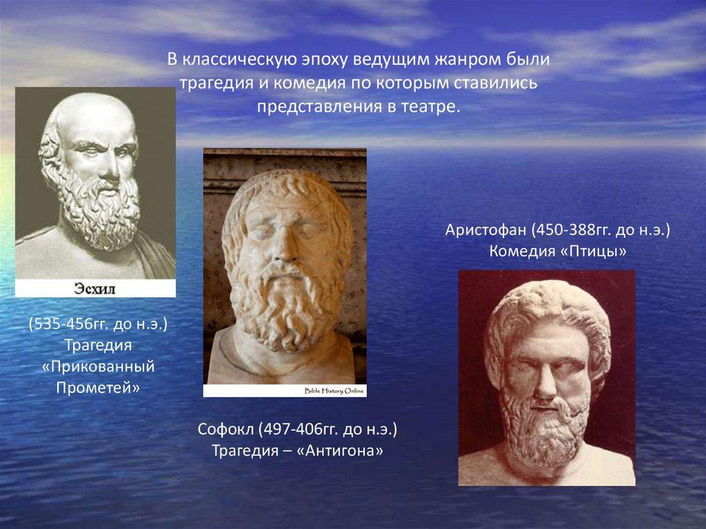 В классическую эпоху ведущим жанром былитрагедия и комедия по которым ставились