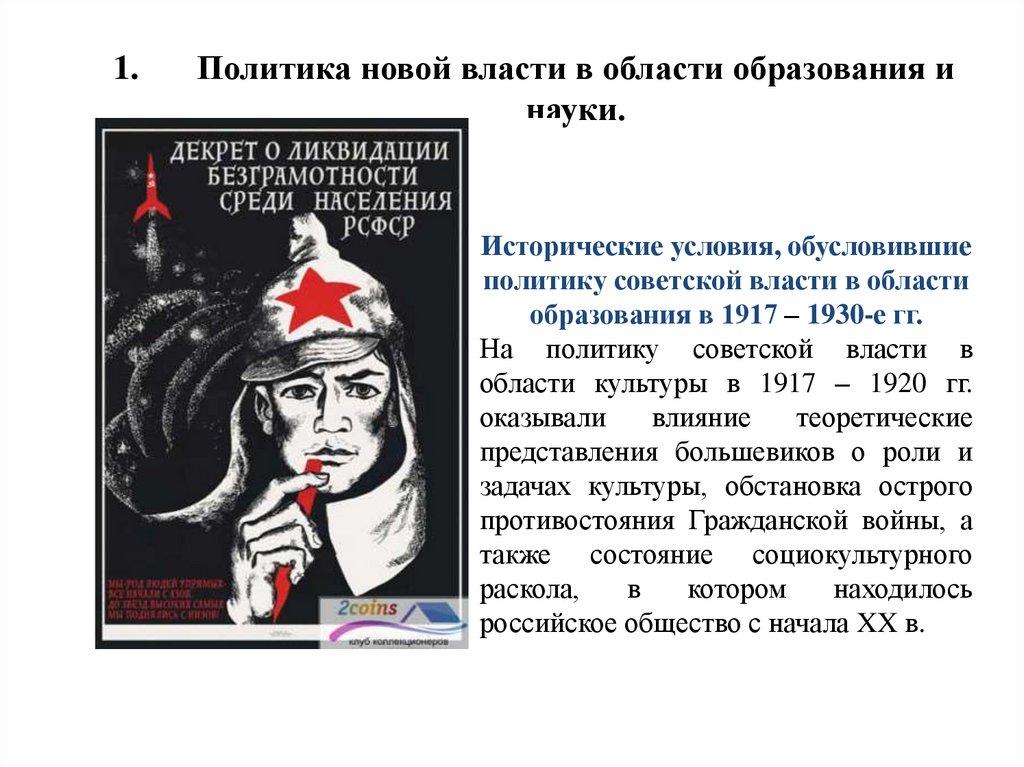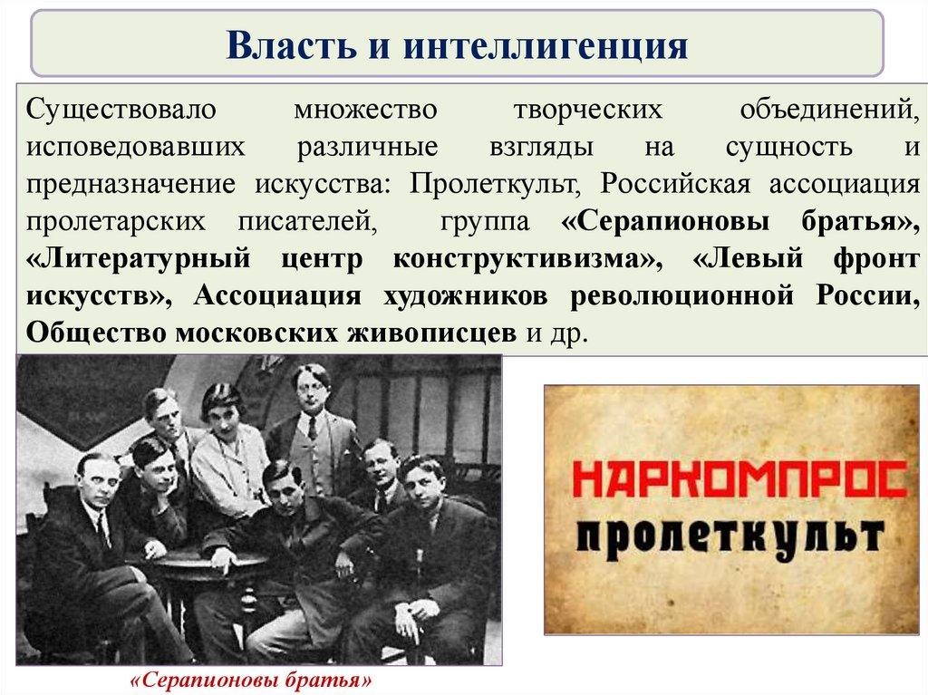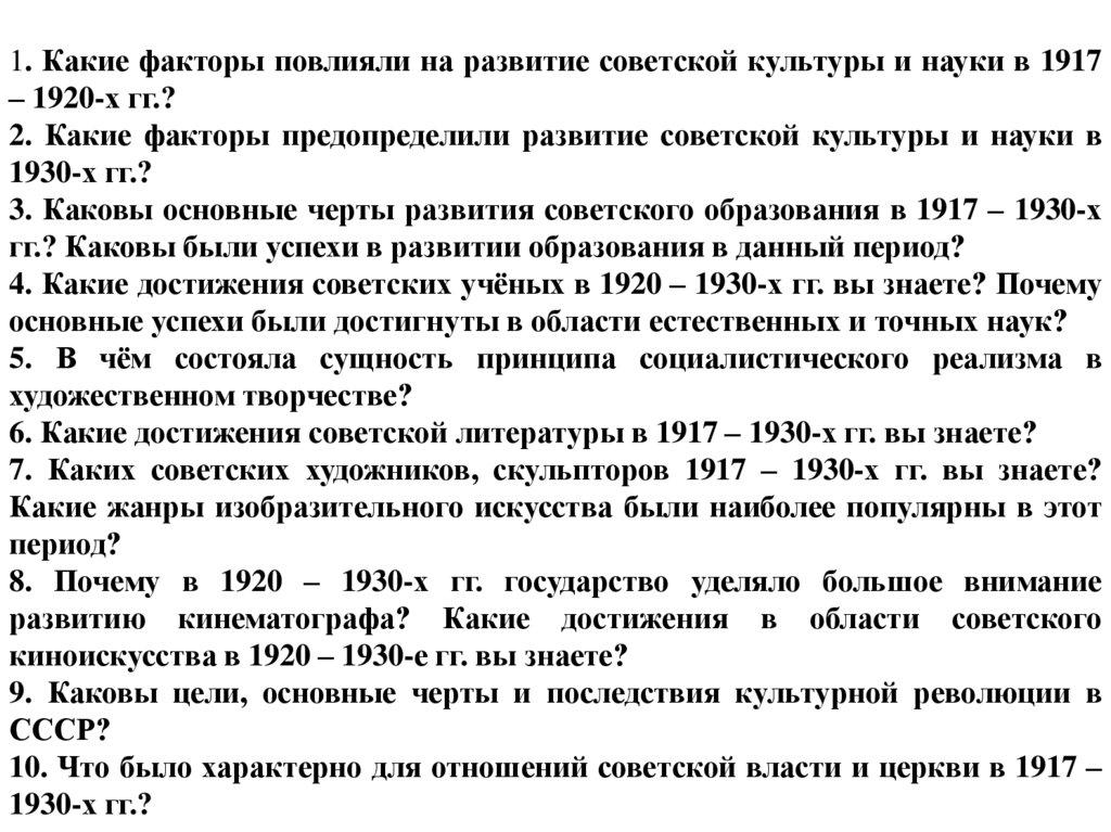 1. Какие факторы повлияли на развитие советской культуры и науки в 1917– 1920-х гг.?