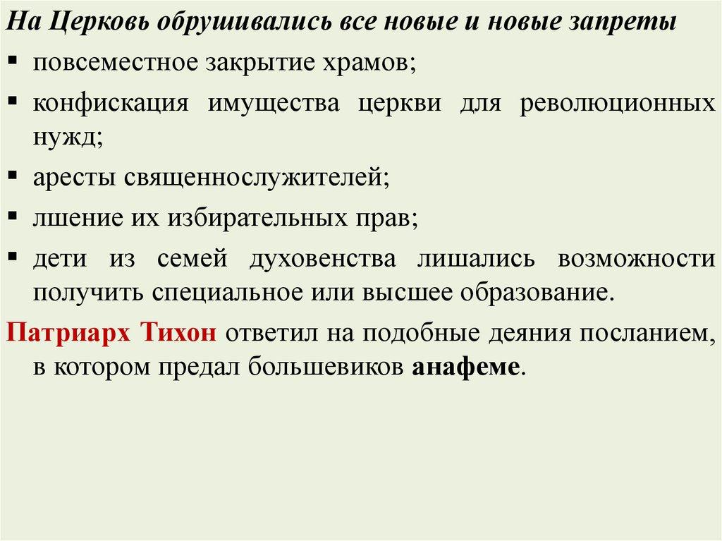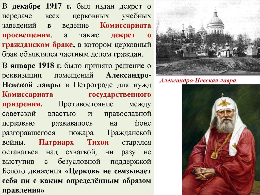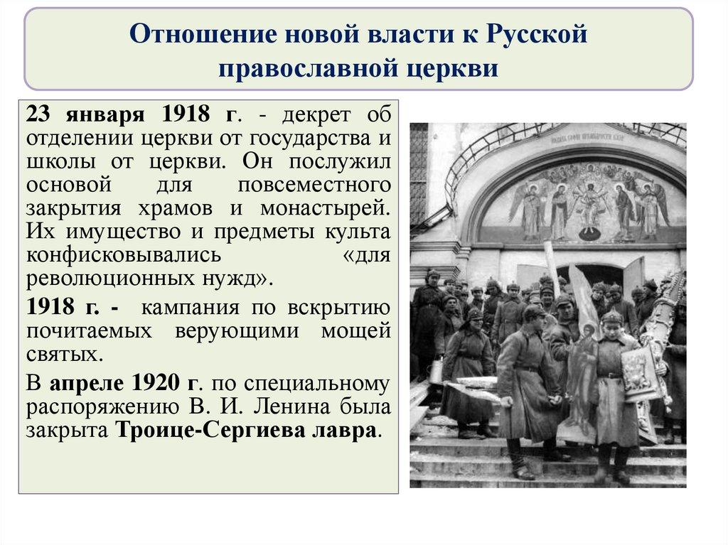 10. Что было характерно для отношений советской власти и церкви в 1917 –