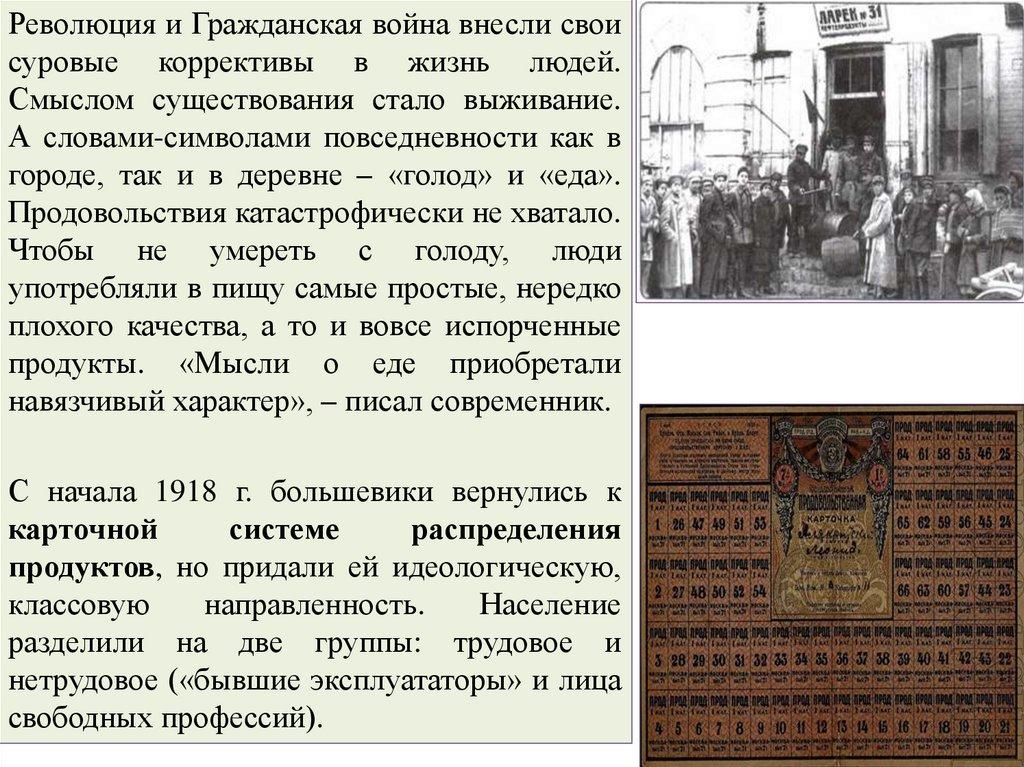 Революция и Гражданская война внесли своисуровые коррективы в жизнь людей.