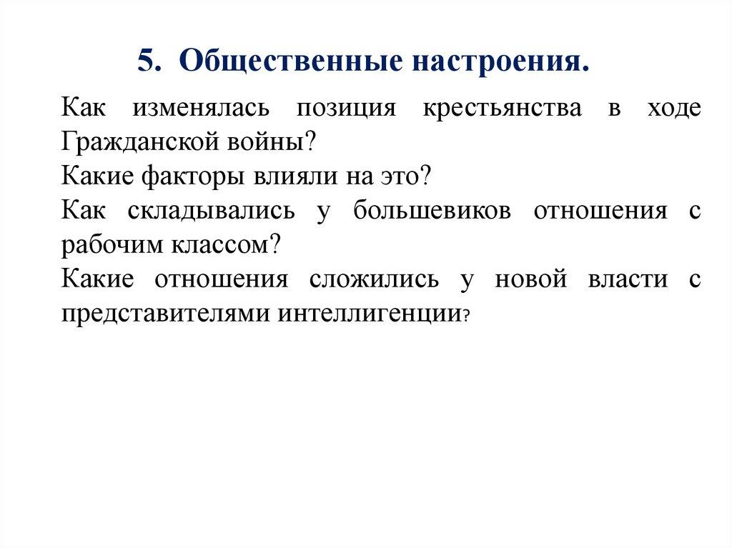 5. Общественные настроения.Как изменялась позиция крестьянства в ходе