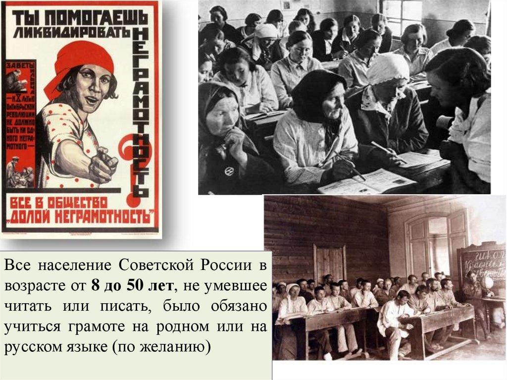 Все население Советской России ввозрасте от 8 до 50 лет, не умевшее