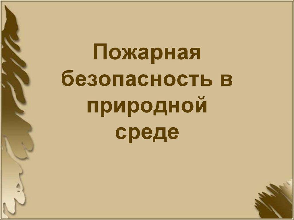 Пожарная безопасность в природной среде