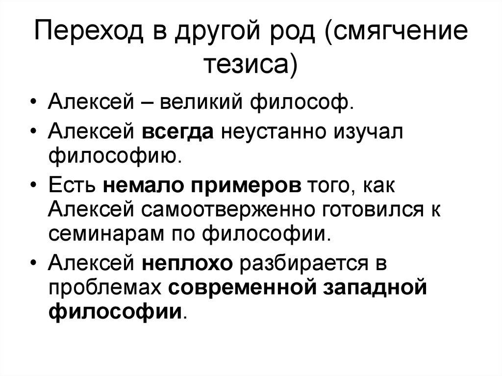 13. Переход в другой род (смягчение тезиса)
