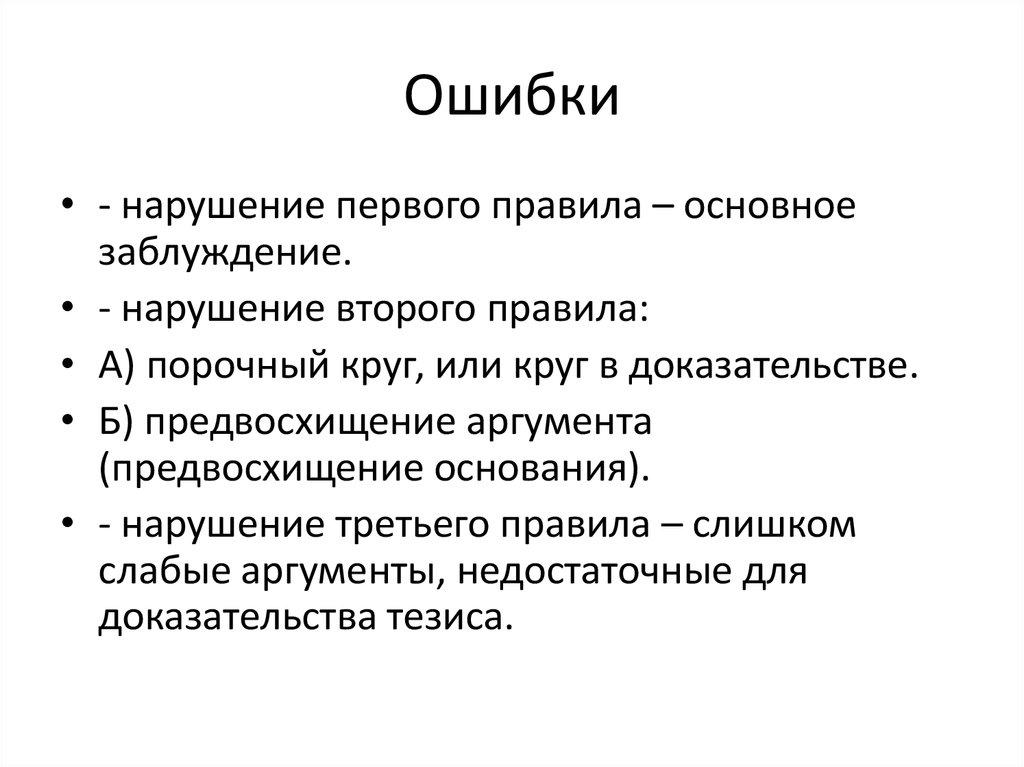 • - нарушение первого правила – основноезаблуждение.