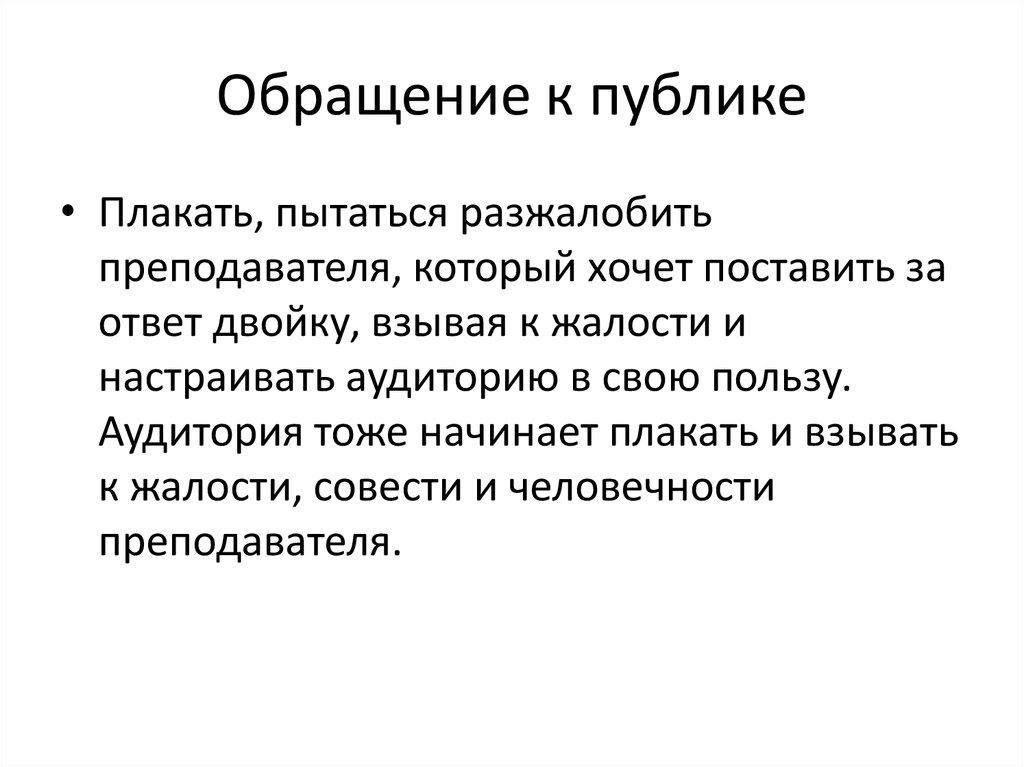 • Плакать, пытаться разжалобитьпреподавателя, который хочет поставить за
