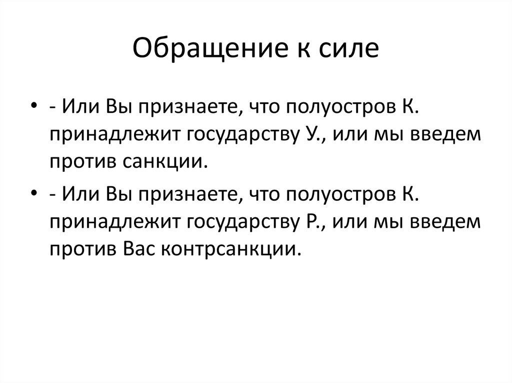 • - Или Вы признаете, что полуостров К.принадлежит государству У., или мы введем