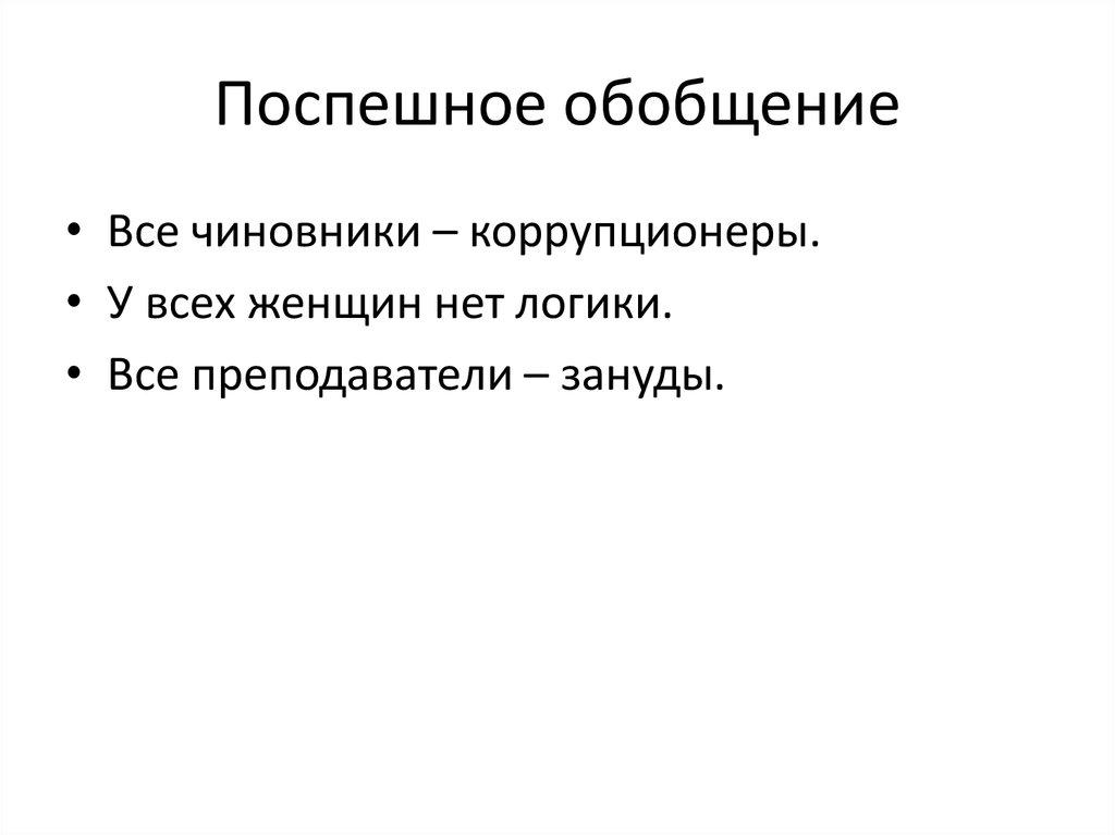 • Все чиновники – коррупционеры.• У всех женщин нет логики.