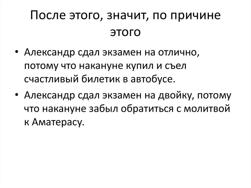 • Поспешные обобщения.• После этого, значит, по причине этого.