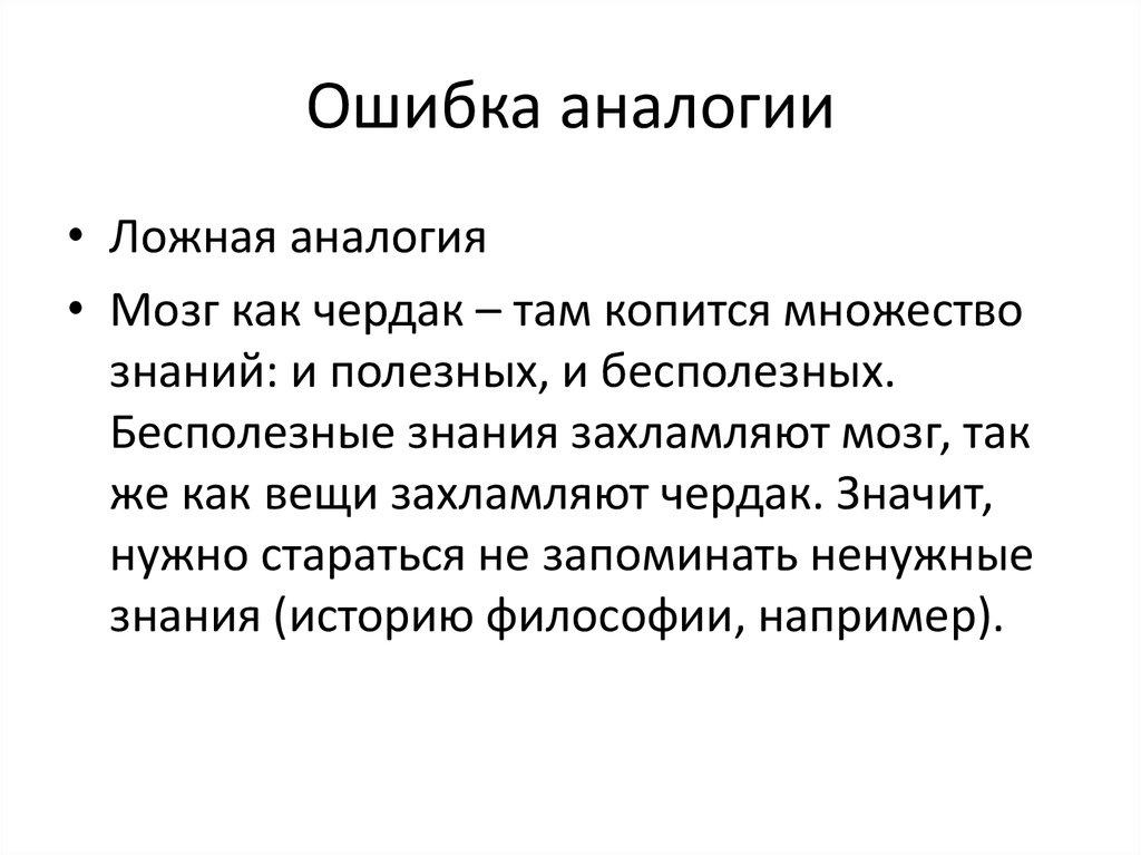 • Ложная аналогия• Мозг как чердак – там копится множество