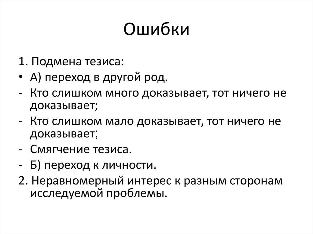 1. Подмена тезиса:• А) переход в другой род.