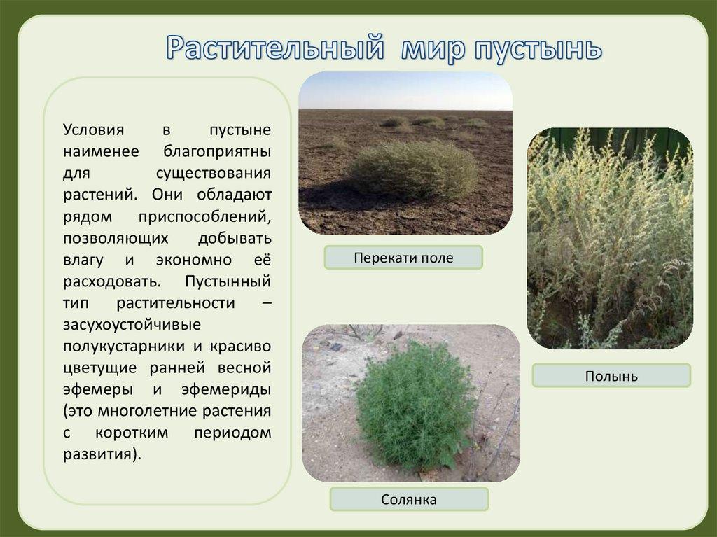 • Многие из них растут в пустыне только в прохладное время года, когда влаги