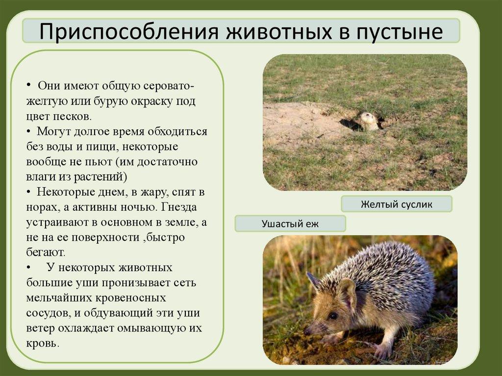 Приспособления животных в пустыне• Они имеют общую сероватожелтую или бурую окраску под