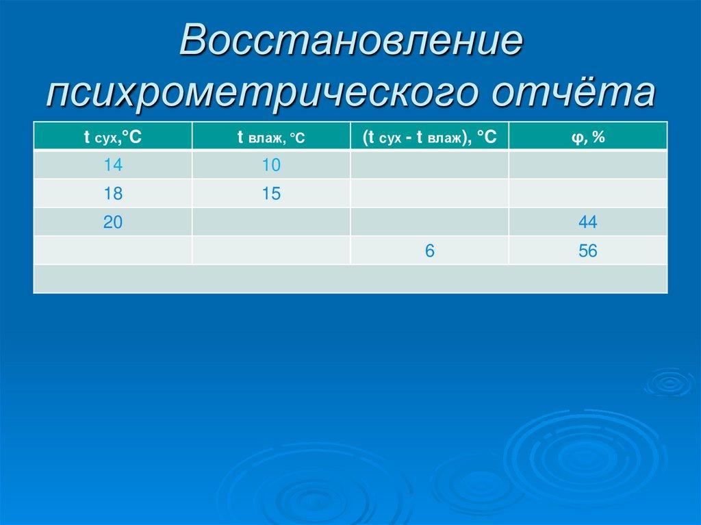 20. Восстановление психрометрического отчёта