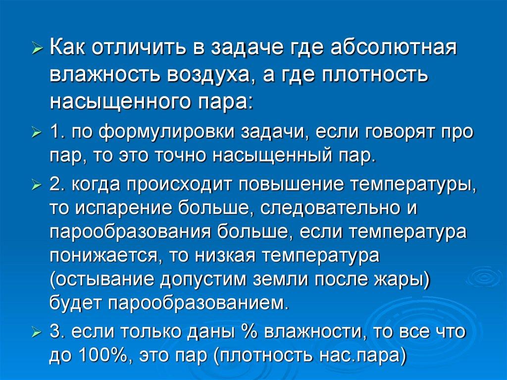 Как отличить в задаче где абсолютнаявлажность воздуха, а где плотность